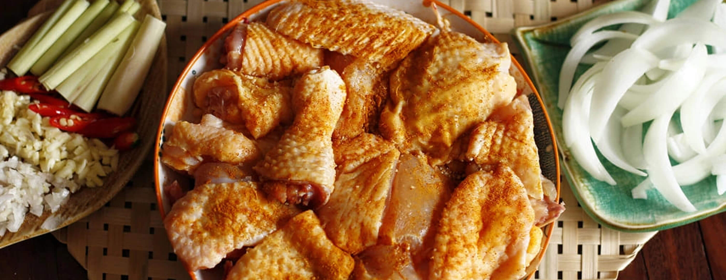 - Spinkle chicken with 1 teaspoon salt, 2 teaspoons sugar, 1 teaspoon seasoning seeds and ½ teaspoon curry powder